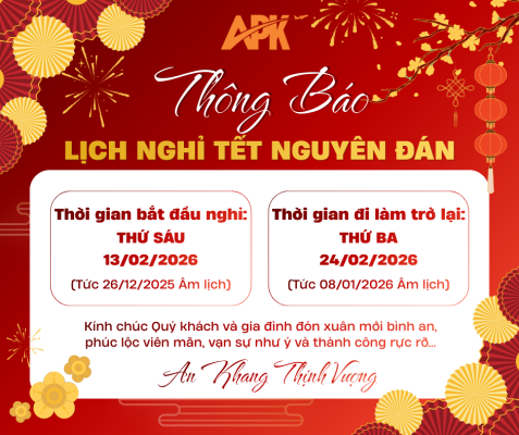 Nhân dịp Tết Nguyên Đán 2026 đang đến gần, Công Ty TNHH Đầu Tư Và Phát Triển Quốc Tế APK xin trân trọng thông báo đến Quý khách hàng và Quý đối tác lịch nghỉ Tết như sau: